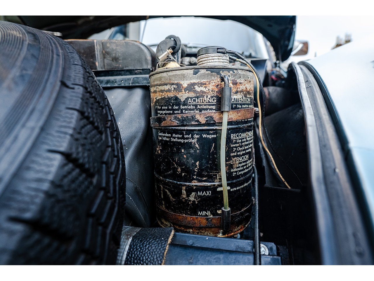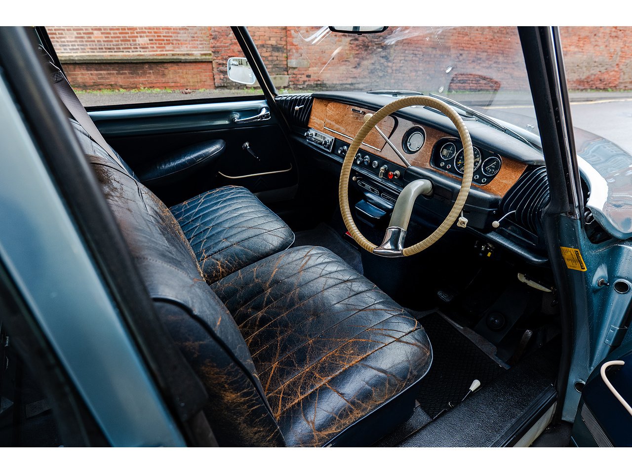 Inside, the leather interior has been carefully and sympathetically repaired in order to preserve its original patinated charm. Rather than over-restored, the cabin retains the character, texture and authenticity that only time can create, offering a wonderfully evocative driving environment complete with the signature single-spoke steering wheel and expansive glasshouse.