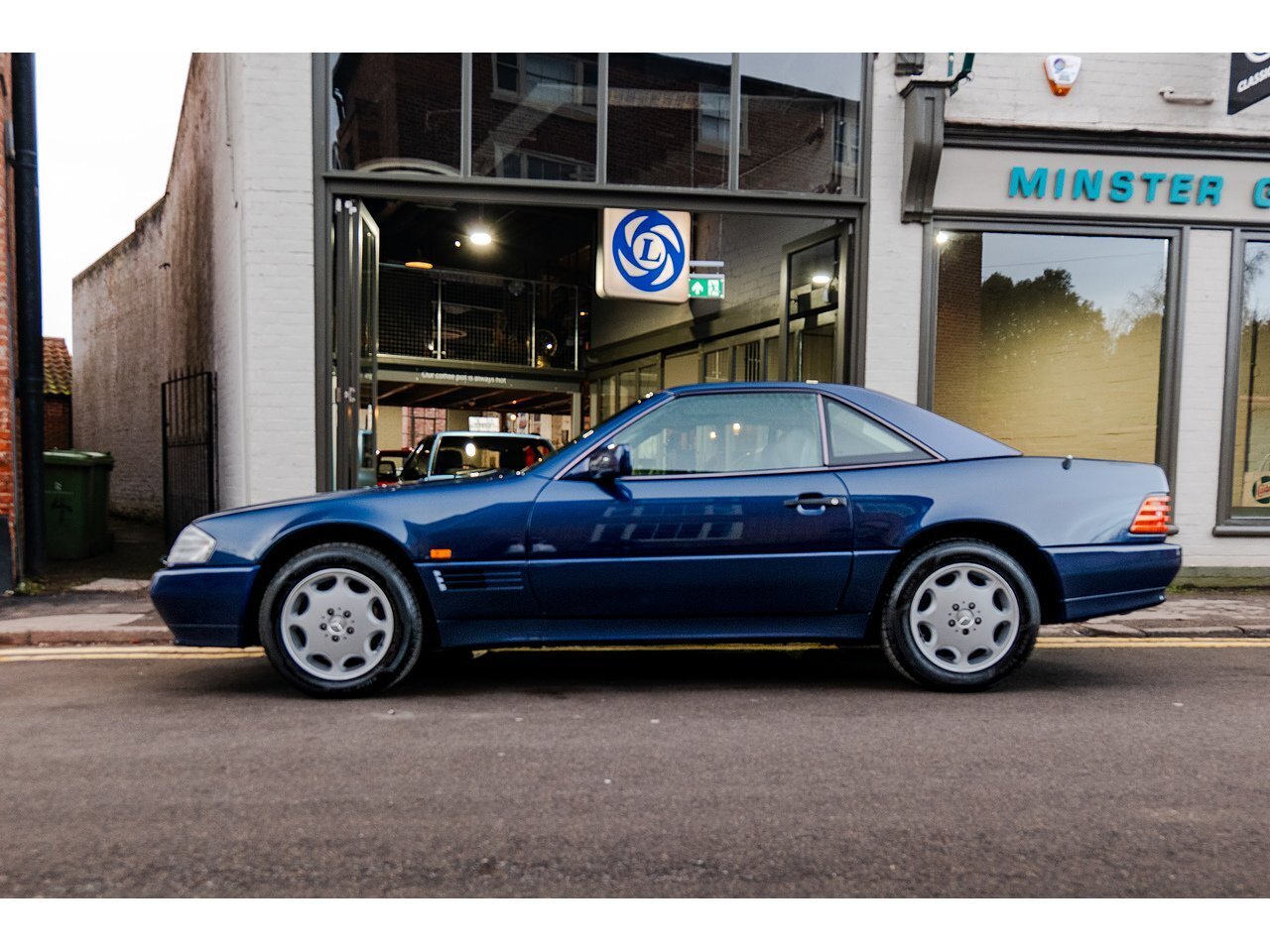 Here we have a beautifully presented Mercedes-Benz SL600 (R129), first registered in 1995 and finished in an elegant metallic blue, paired with a light grey leather interior and a contrasting navy blue soft top.