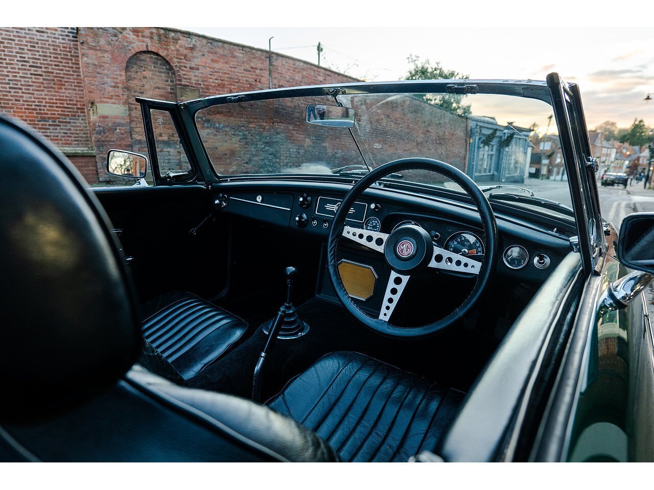 Inside, the black interior shows attractive, honest patina. The seats present well, the dashboard remains refreshingly original in appearance, and all familiar MG controls are exactly where they should be. It’s an authentic cabin that feels correct for the period while remaining comfortable and inviting.
