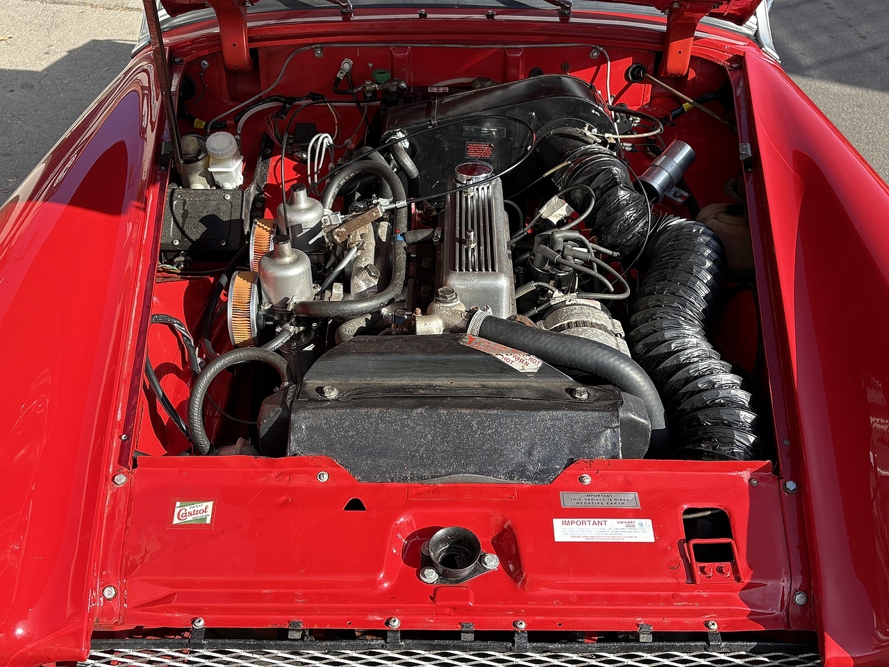 In 2025, the car underwent extensive mechanical refreshment, including a comprehensive ignition and fuel-system overhaul with a new coil, distributor components, contact set, condensers and a mechanical fuel pump. The carburettors were serviced with a replacement SU HS4 float-bowl chamber, new throttle and choke cables and linkages, and fresh return springs, resulting in smooth and responsive performance.