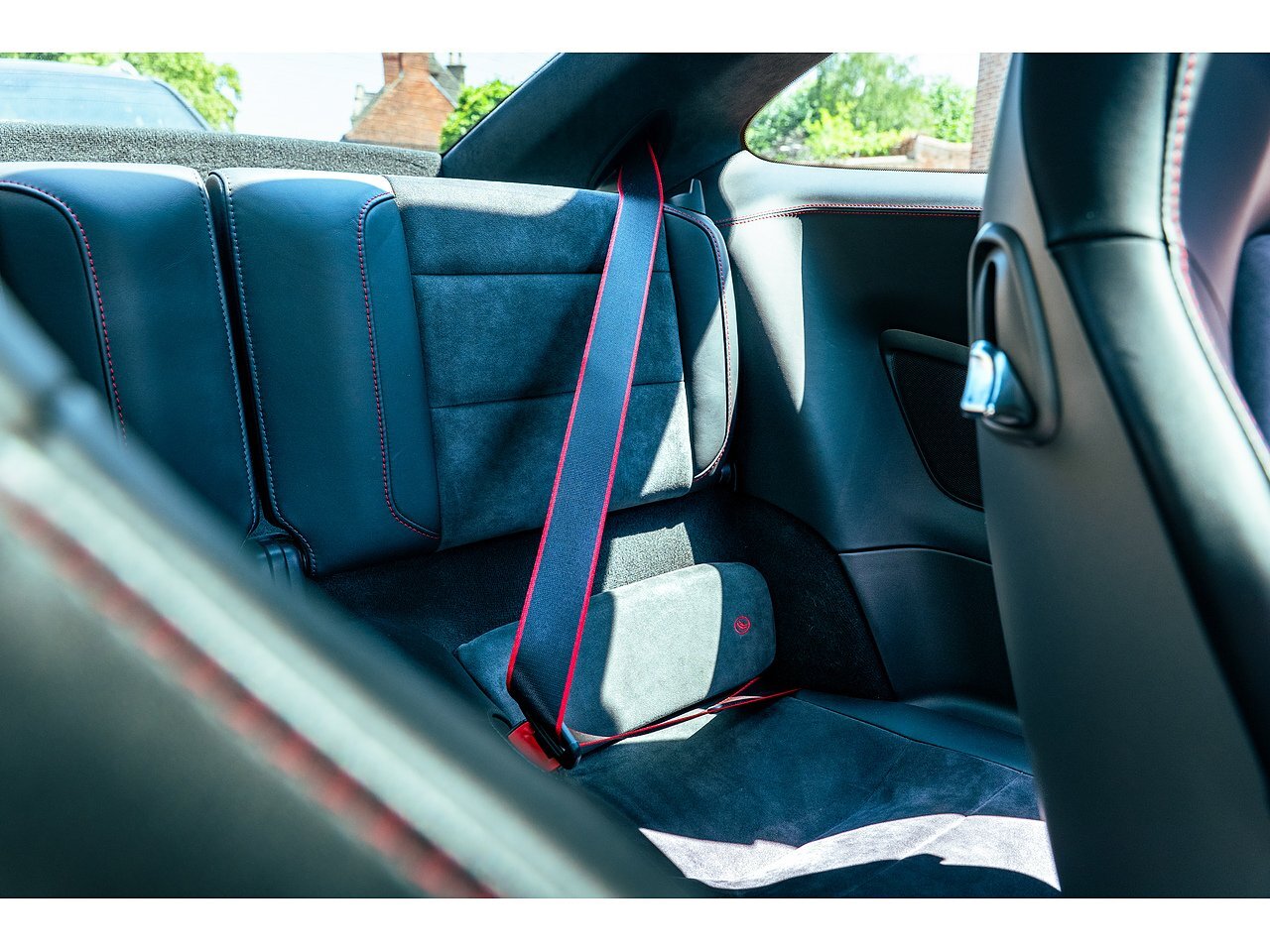 Inside, the cabin is finished to GTS specification with a combination of leather and Alcantara, accented by red contrast stitching across the seats, dash, and doors. The black Alcantara sports steering wheel provides excellent tactile feedback, and carbon fibre trim elements lend a modern motorsport-inspired finish. GTS logos are embroidered into the headrests, and the red instrument dials continue the cohesive, performance-focused aesthetic.