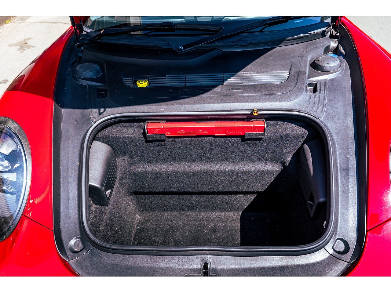 Externally, the car features satin black 20-inch centre-lock GTS alloy wheels, black-finished bi-xenon headlights with Porsche Dynamic Light System (PDLS), wider rear arches as per the Carrera 4, and the distinctive SportDesign front and rear valances. A tilt and slide electric glass sunroof adds versatility and light to the already well-appointed cabin. The Carmine Red paintwork gives this GTS an assertive presence, perfectly matched to its performance capabilities.