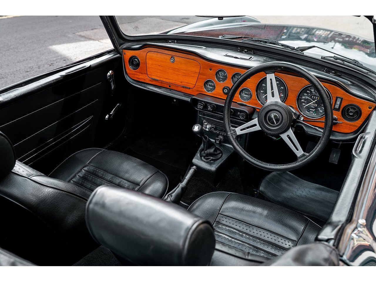 Powered by Triumph’s 2.5-litre straight-six engine, this example has been converted from the original Lucas fuel injection system to twin SU carburettors – a well-proven upgrade that enhances drivability and simplifies maintenance while retaining the character of the six-cylinder motor. Further reliability is provided by a Distributor Doctor electronic ignition system, ensuring crisp starting and dependable performance. Importantly, the car is supplied with its original ignition components, preserving the option for a return to factory specification if desired.